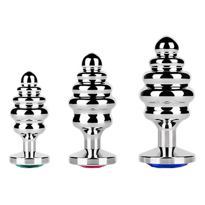 Metal anal plug with smooth threaded design, small, medium, and large sizes, stainless steel anal plug, alternative toy, LGBTQ+ accessory.