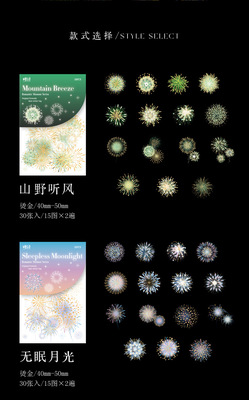 Sugar Poetry PET Sticker Pack Romantic Moment Series INS Bronzing Fireworks Handbook DIY Decorative Stickers 30 Pieces 6 Styles