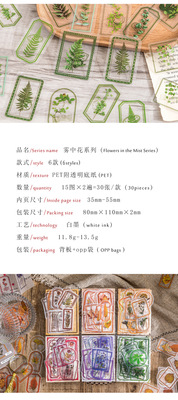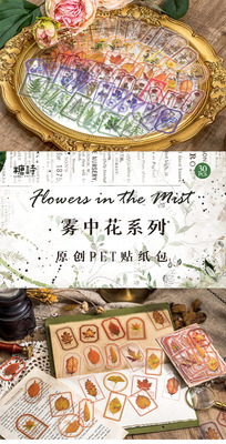 Sugar Poetry PET sticker pack, Misty Flower series, Plant planner DIY material decorative stickers 30 pieces in 6 designs to choose from