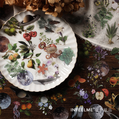 Infeel.Me PET Sticker Pack Mountain and Sea Illustrated Series Fresh Flower Handbag DIY Decorative Stickers 6 Types
