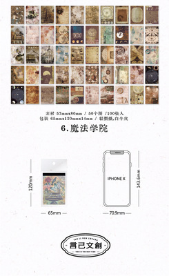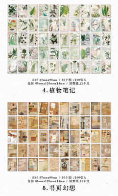Speech Material Paper, Scattered Collection Series, Retro Handmade Diary DIY Material Decor Base 100 Sheets, Includes 6 Styles