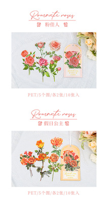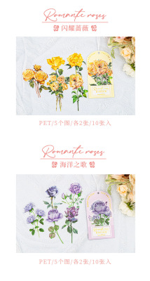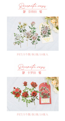 Sticker for a Wonderful Day, Romantic Rose Series, INS Rose Journal Decorative Material Sticker Sheet, 10 Pieces, 6 Designs to Choose From