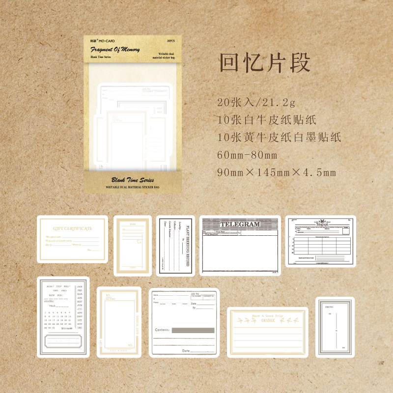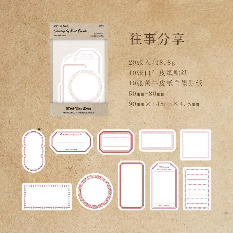 MoMo Dual Sharing Sticker Pack Blank Time Series Minimalist Handnote Decoration Material Notes 20 Pcs