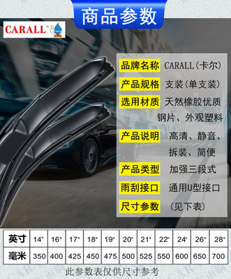 CARALL wiper blade boneless universal three-section U-shaped car, trolley and truck wiper strip