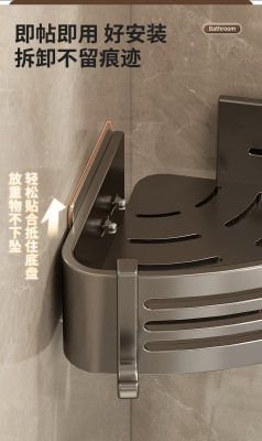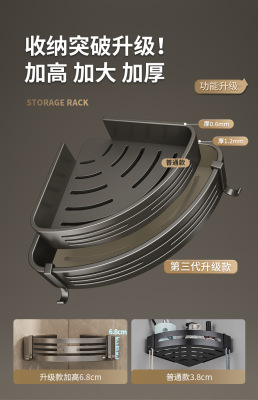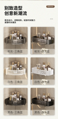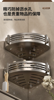 Gun gray hole-free bathroom storage rack space aluminum bathroom triangle basket wall-mounted toilet corner storage rack