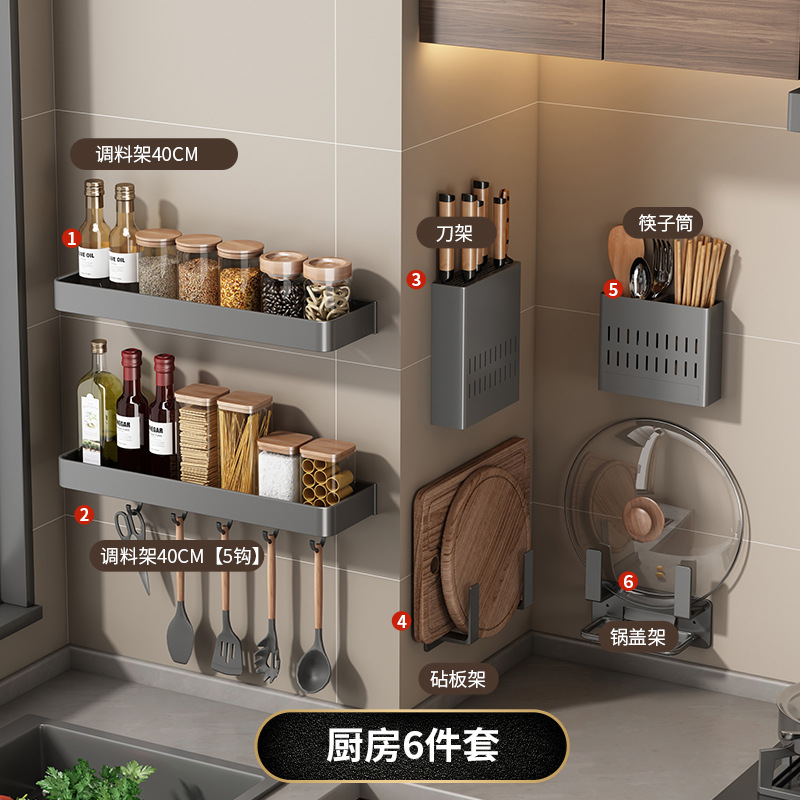 Gun gray kitchen storage rack without punching wall-mounted knife holder seasoning supplies large family multi-functional storage rack