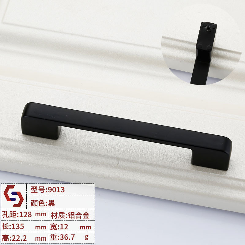 Factory direct sales solid single hole furniture hardware accessories drawer cabinet door handle American black cabinet wardrobe handle
