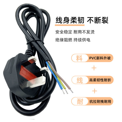 British three-core bare wire connection cord single-ended soldered with tin British standard UK plug cord BS British standard power cord