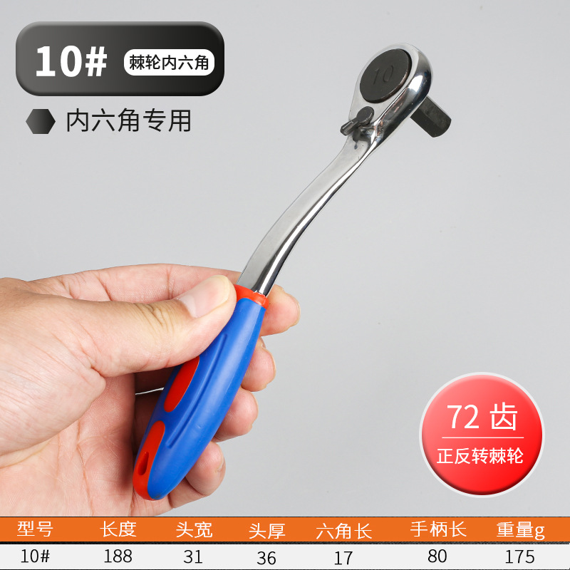 Specifications and models: Plastic handle single-head ratchet inner hexagonal 10mm0.18kg