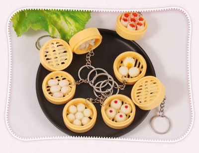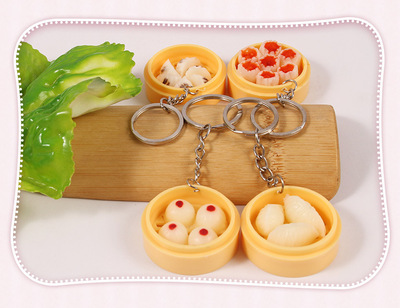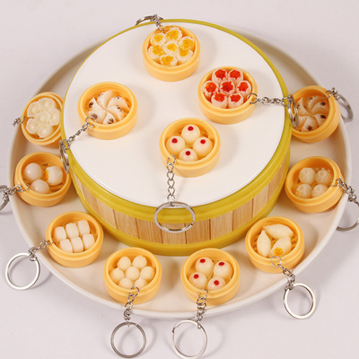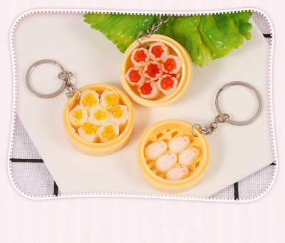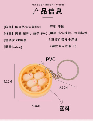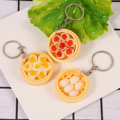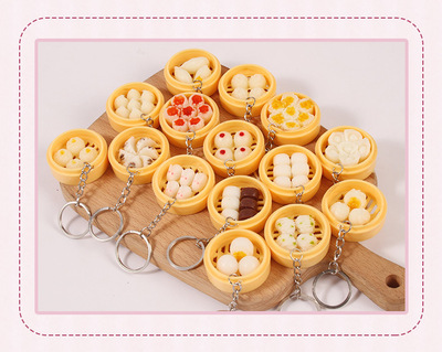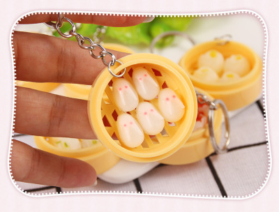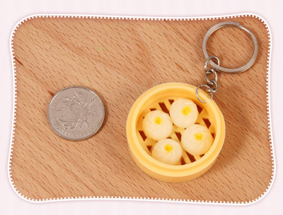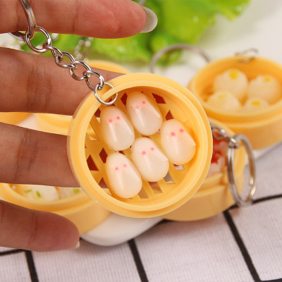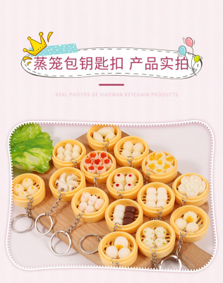 Personal Creative Food Simulation Keychain Pendant Mini Steamed Bun Mantou Shaomai Breakfast Snack Shop Gift