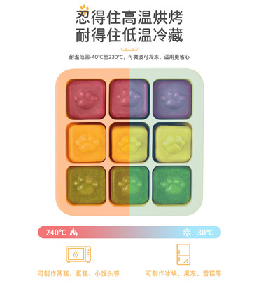 Three Trust Cat Paw Ice Mold DIY Cartoon Cat Paw Ice Cubes Baby Steam Cake Rice Cake Food Storage Box Customizable