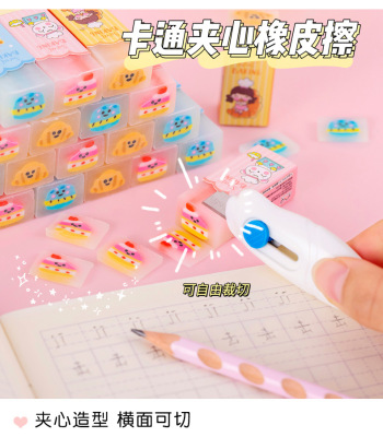 Stationery Art Creative Cartoon Cute Filled Eraser for Primary School Students, Can Cut Characters and Animals, Children's Gift