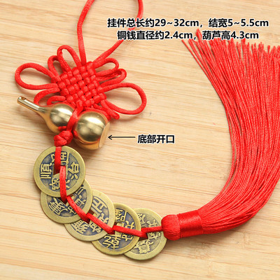 Brass Gourd Open Five Emperors Coins Chinese Knot Tassel Home Feng Shui Pure Copper Five Emperors Coins Copper Coin Pendant