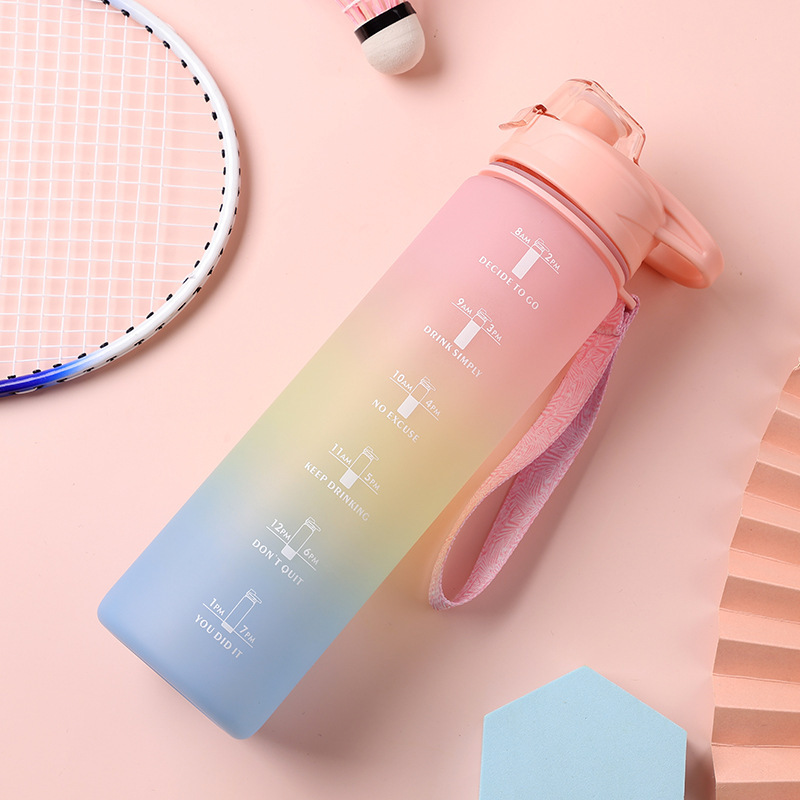 Cross-border best-selling summer 1L large capacity plastic cup with gradient frosted sport water cup for women and men, students, portable space cup