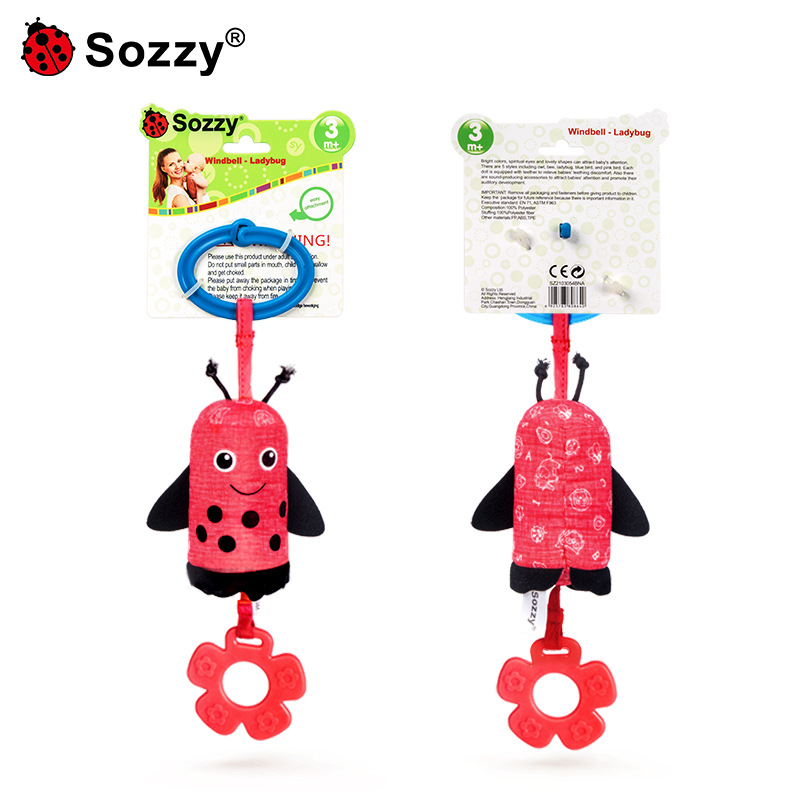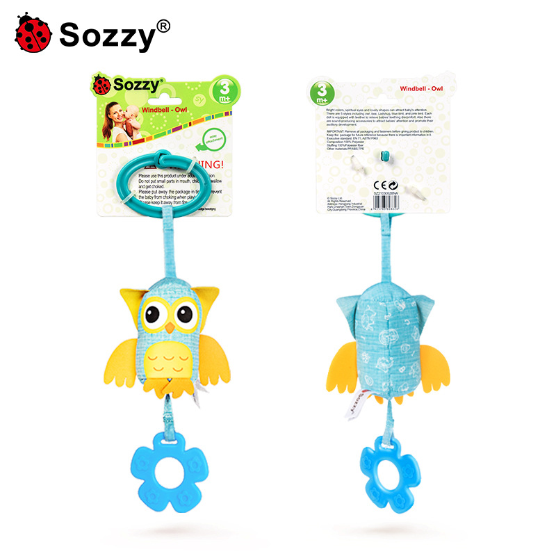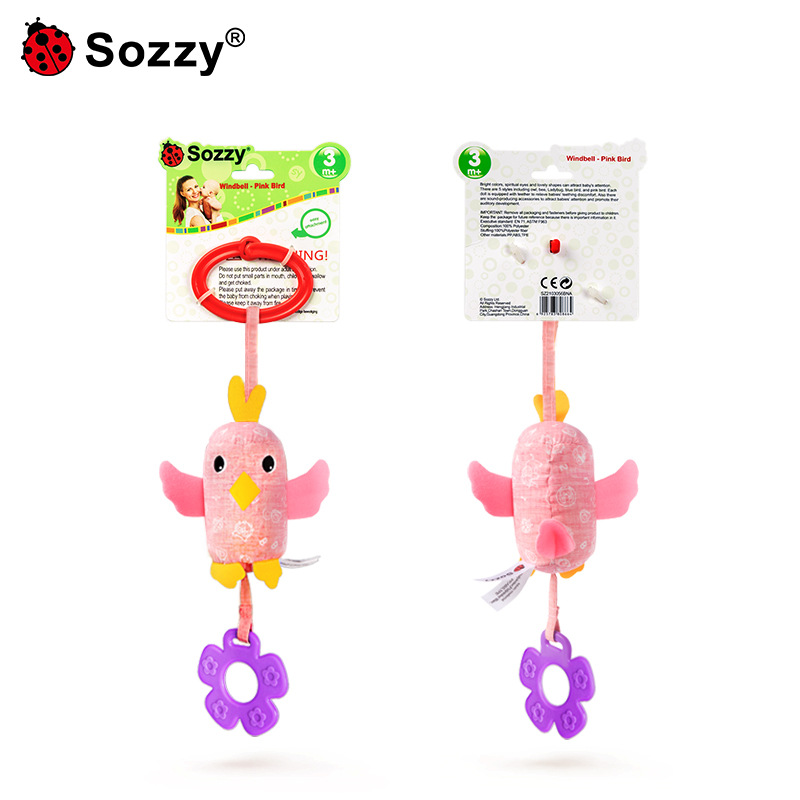Sozzy newborn cartoon animal stroller crib bell car pendant baby wind chime plush baby toy