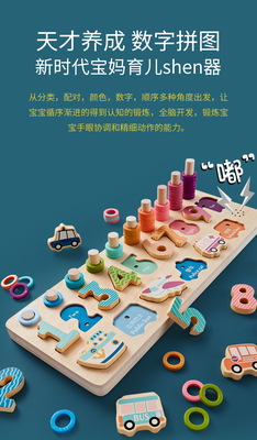 Shape number matching building blocks for young children, early education puzzles, intelligence development, baby brain-moving toys, logarithm board
