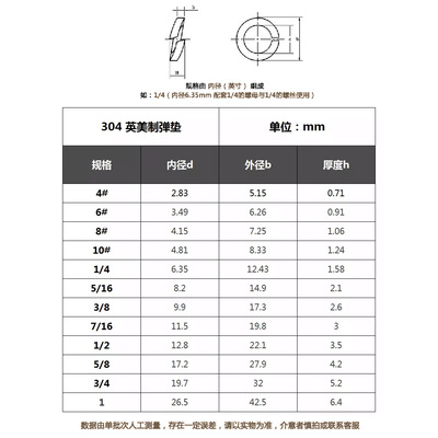 American 304 stainless steel spring washer, British spring washer, open washer, American standard spring washer