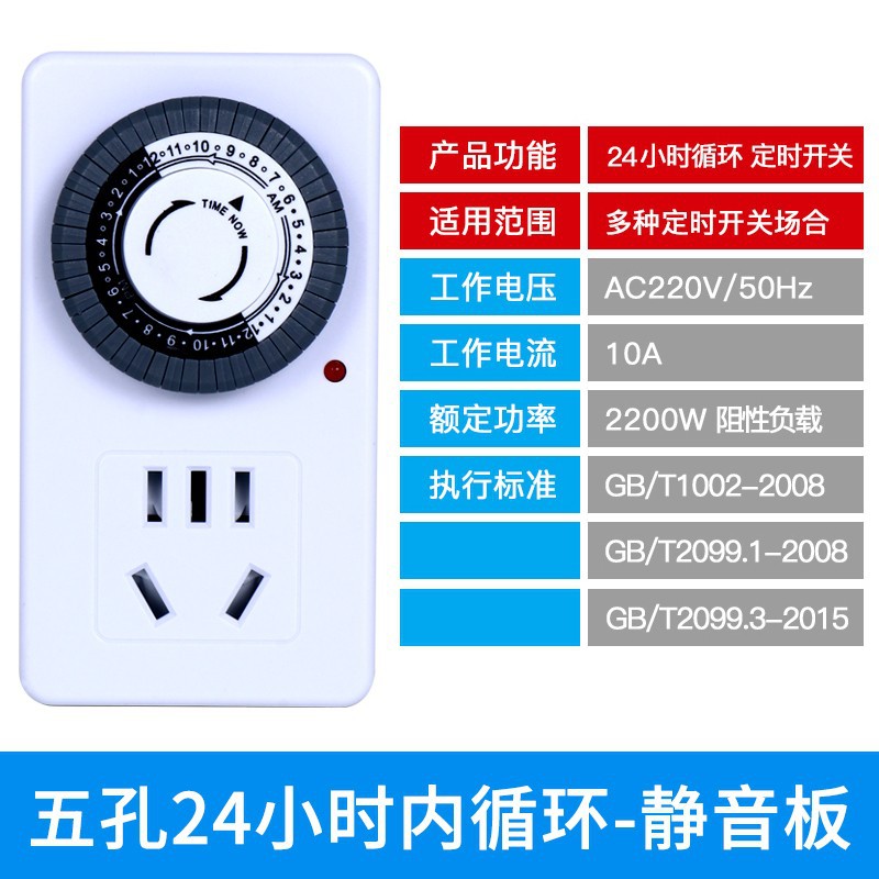 5-hole 12-hour countdown timer - silent lightning protection plate