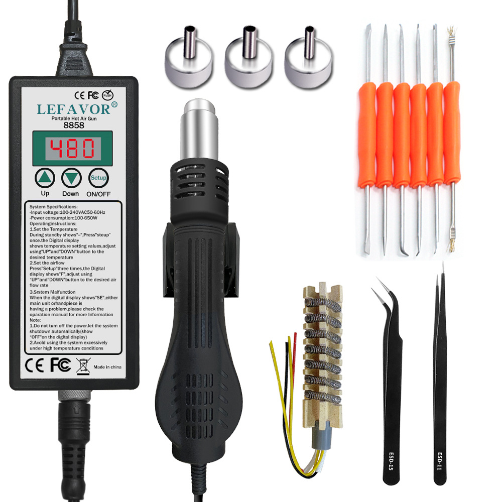 Foreign trade hot model 8858 digital display adjustable temperature hot air gun handheld hot air blower repair mobile phone hot drying gun desoldering station