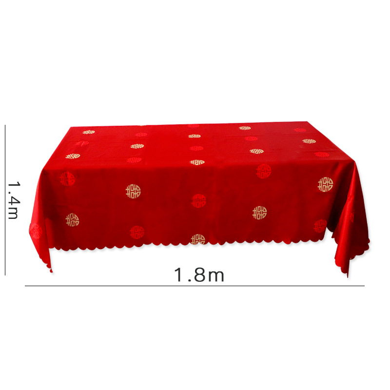 Double Happiness character red tablecloth wedding ceremony festive Chinese engagement banquet table setting cloth table mat decoration arrangement tea table cover