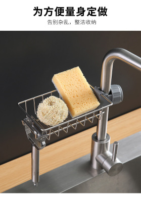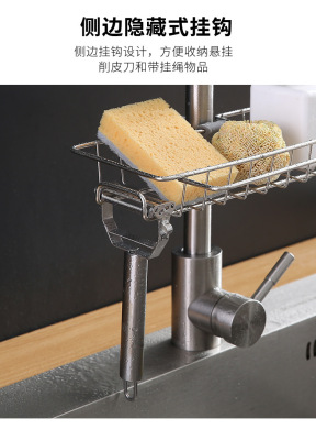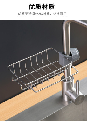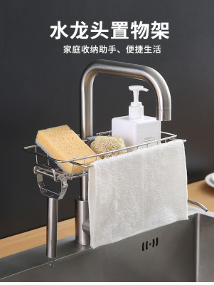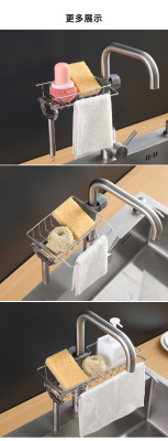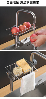 Kitchen faucet storage rack stainless steel sink storage rack household sponge rag dishcloth drain rack hanging basket