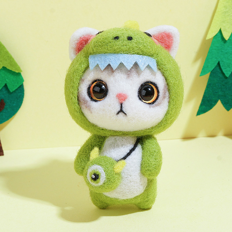 Shipping wool felt poke doll cartoon couple creative new year gift cat cat hand work diy material package