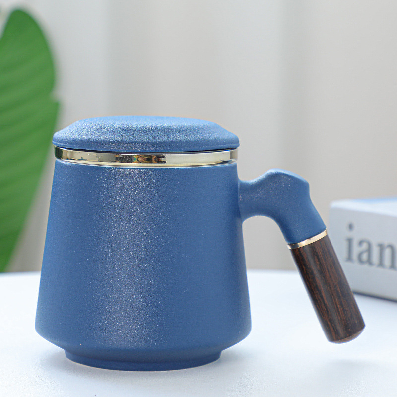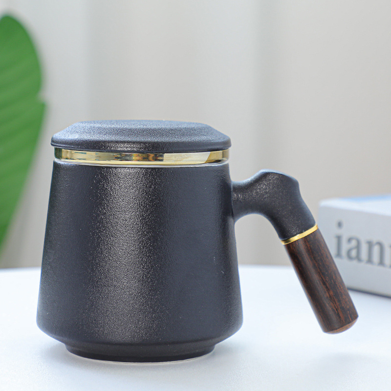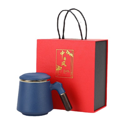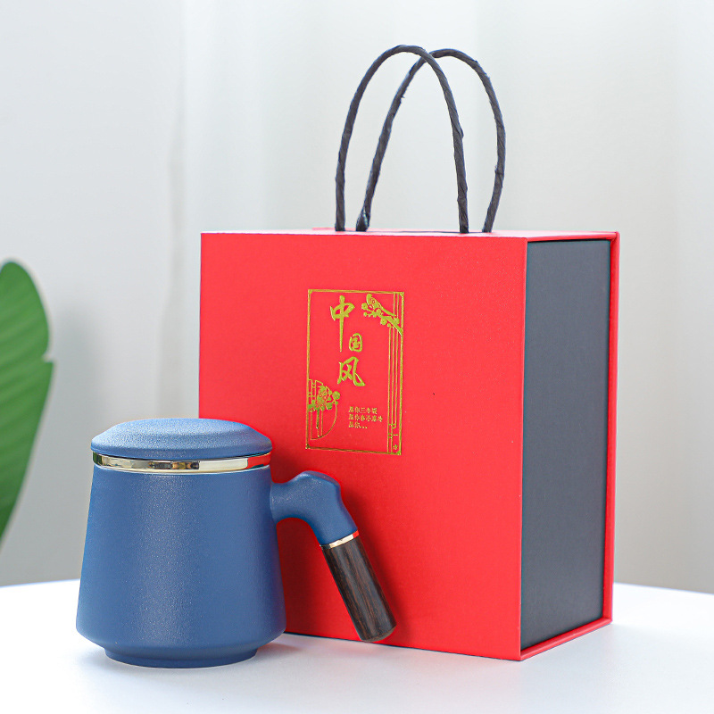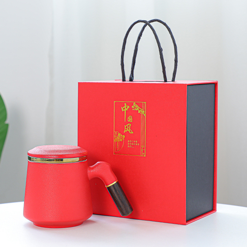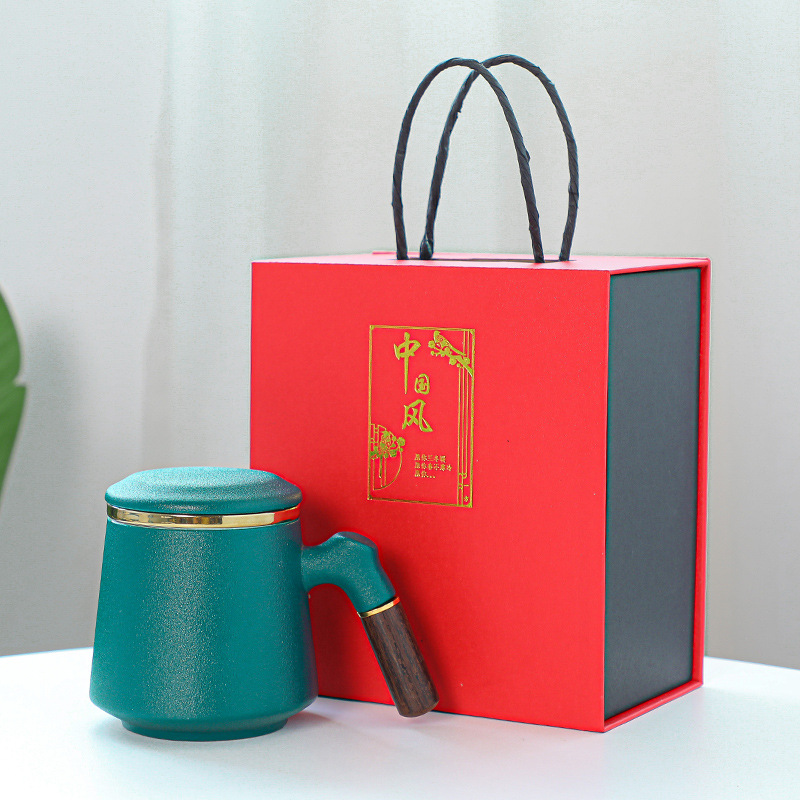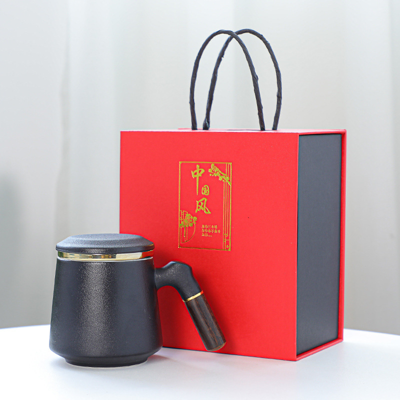 陶瓷辦公杯禮盒裝木柄帶蓋馬克杯過濾內膽三件套激光雕刻水杯禮品