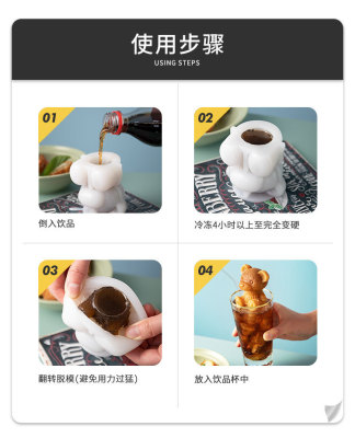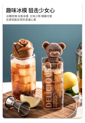 Bear Ice Cube Mold Home Use Silicone Ice Tray Ice Cube Tray Coffee Ice Mold Bear Cartoon Popsicle Mold