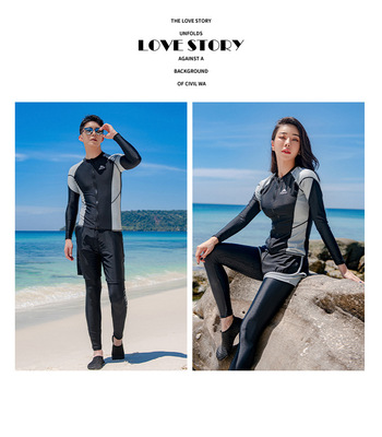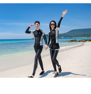 Korean Dongdaemun Large Size Couple Diving Suit Separate Long Sleeve Sun Protection Swimsuit with Athletic Pants Wholesale Cross-border Swimwear