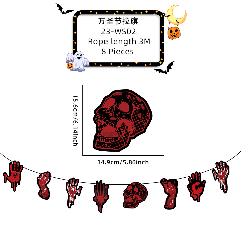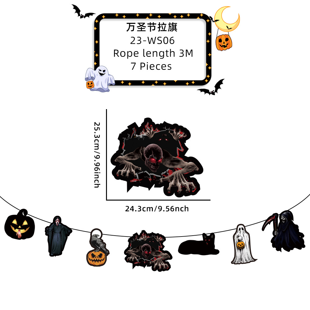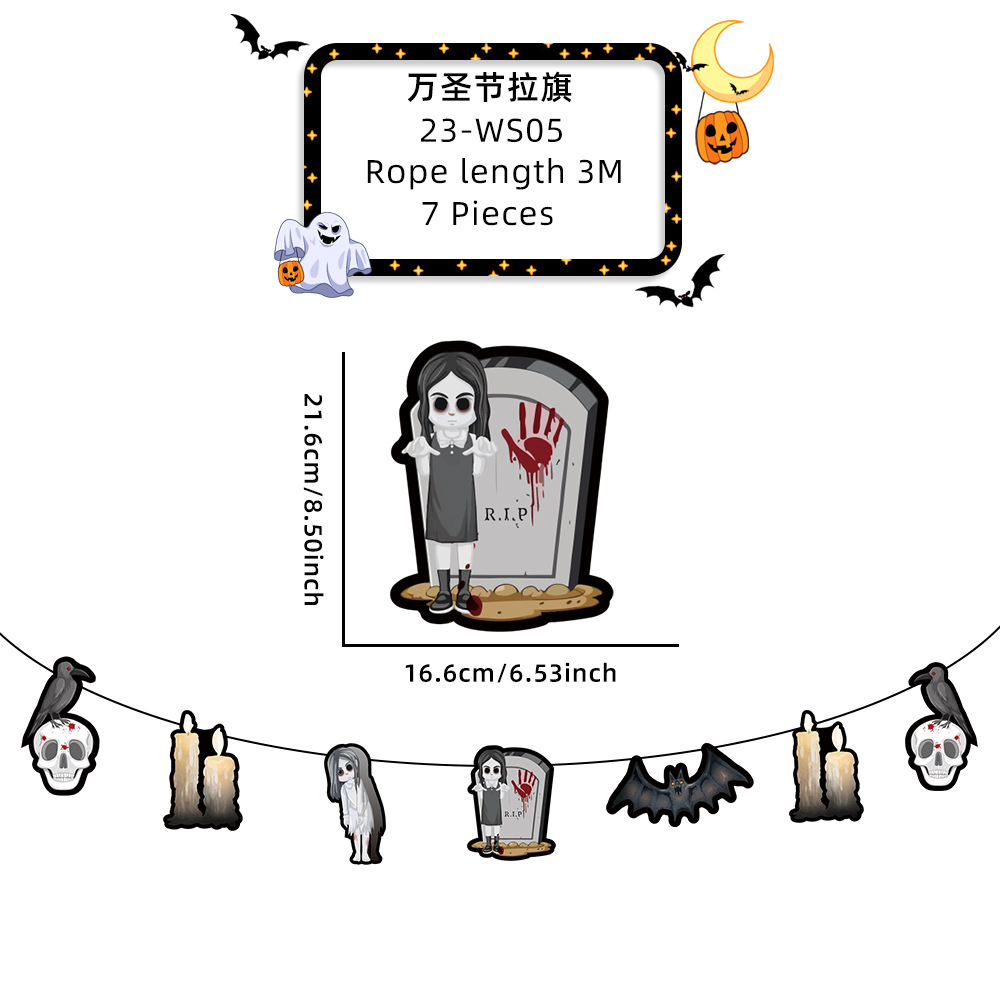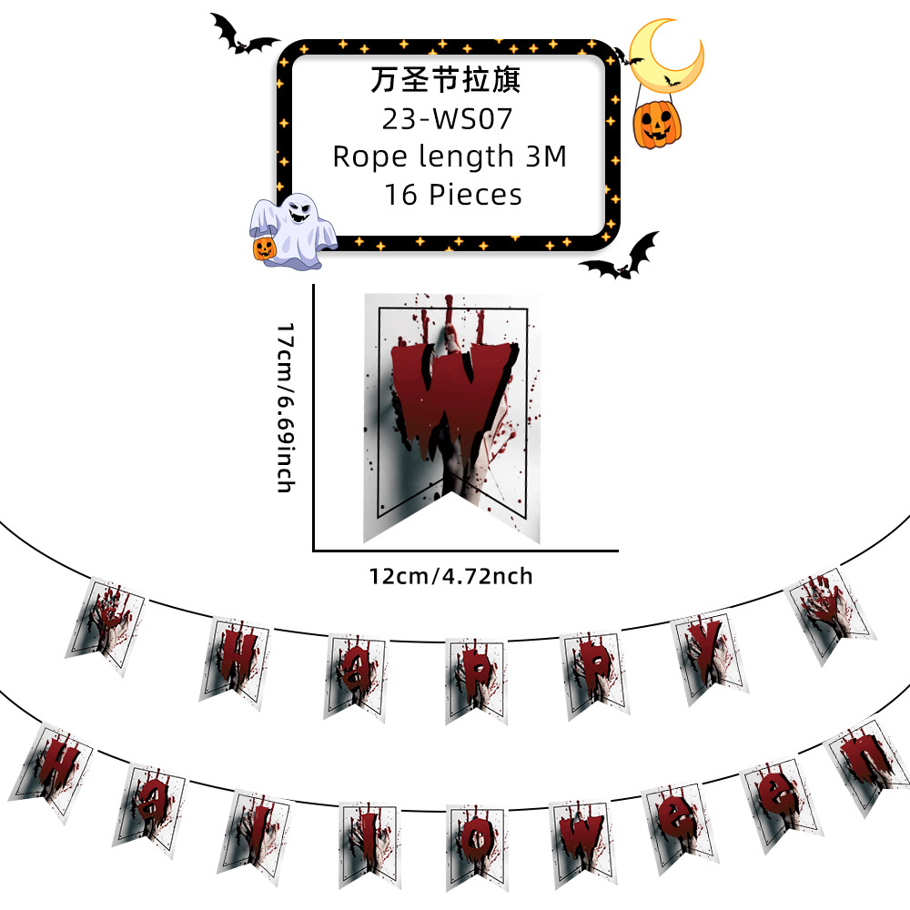 新款萬聖節拉旗掛飾派對裝飾酒吧鬼屋恐怖氣氛布置鬼節紙質拉旗