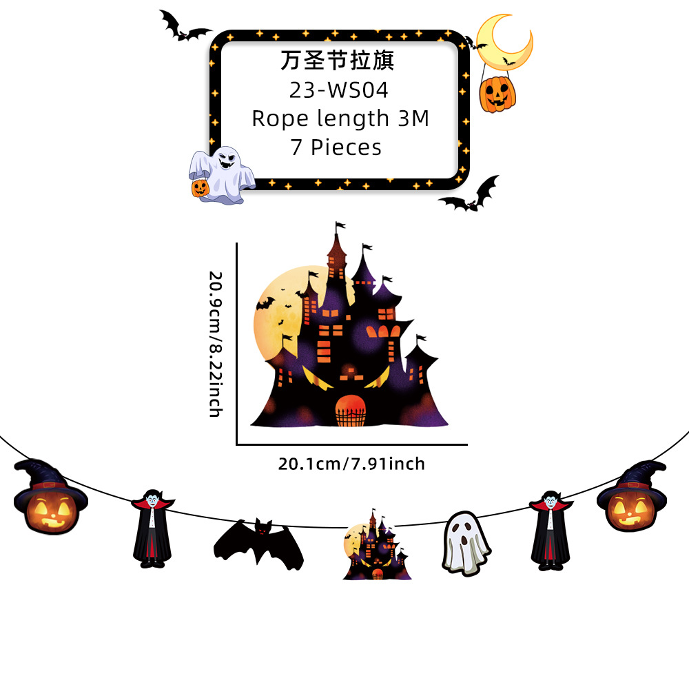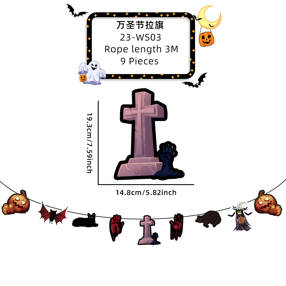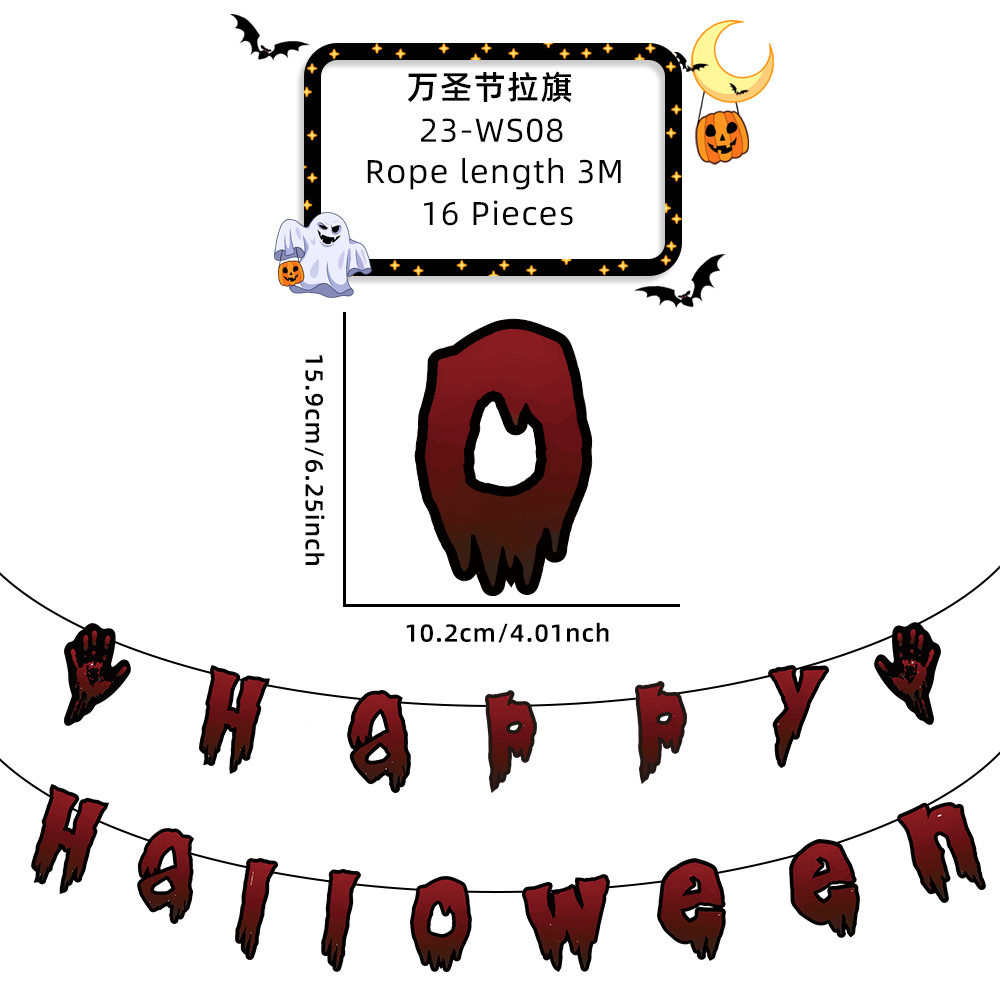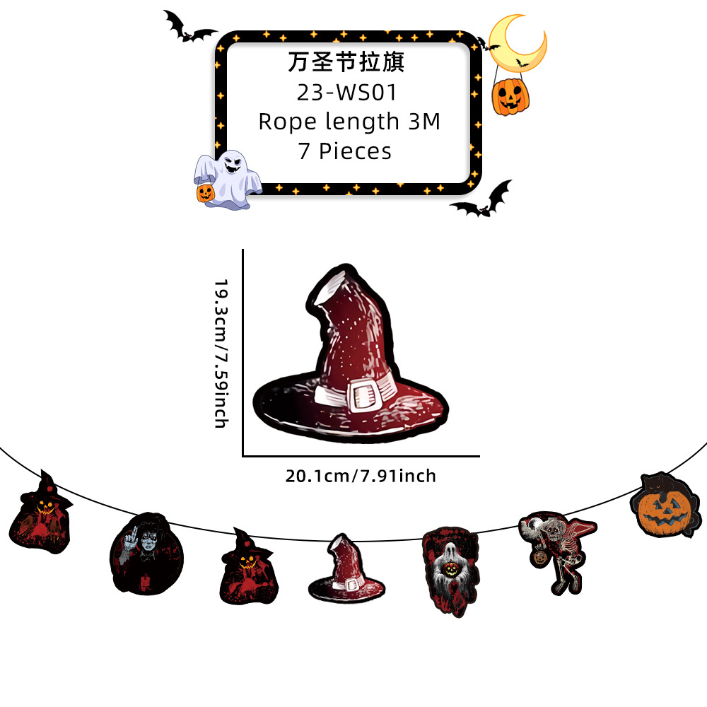 新款萬聖節拉旗掛飾派對裝飾酒吧鬼屋恐怖氣氛布置鬼節紙質拉旗