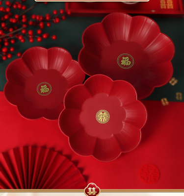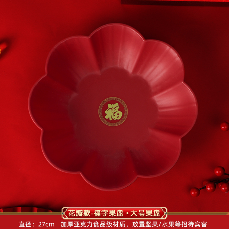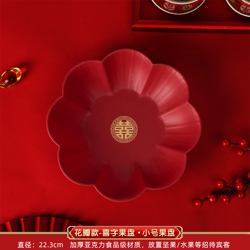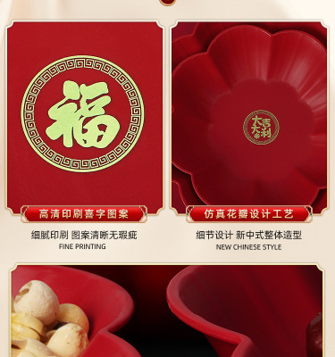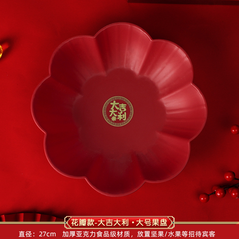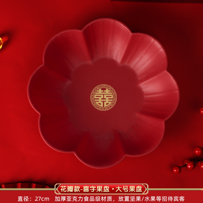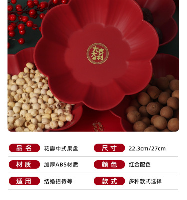 Wedding Petal Fruit Tray Special Red Wedding Candy Tray for Living Room, Wedding Celebration Supplies Variety