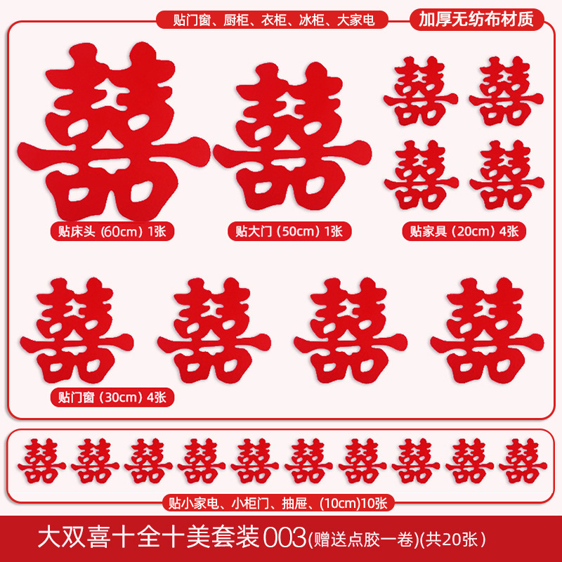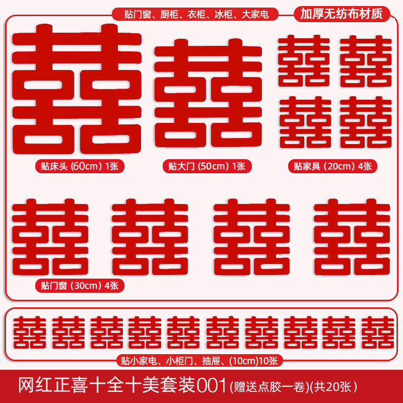 無紡布喜字貼結婚全屋婚房布置套裝小囍大門婚慶裝飾專用品全套