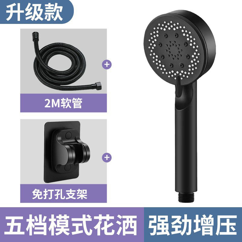 Five-speed supercharged and thickened shower head [black] + 2 meters black hose