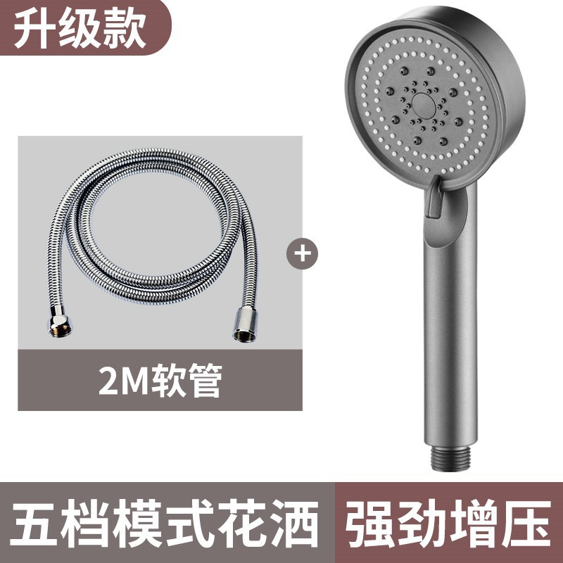 Five-speed supercharged shower [gun gray] + 2 meters double buckle pipe