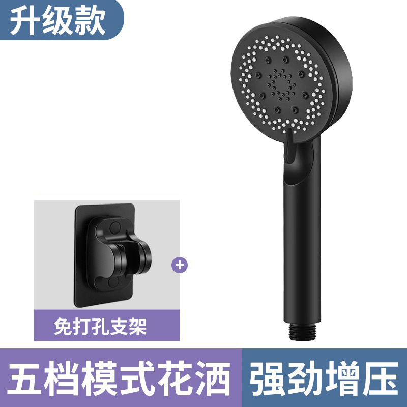 Five-speed supercharged and thickened shower head [Black] + [Black] Xiamen free base