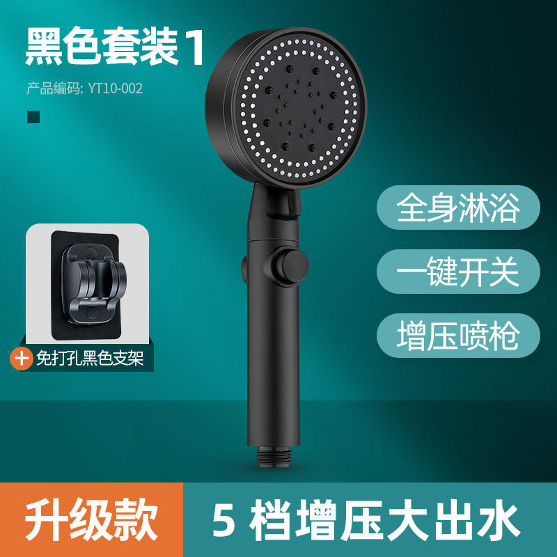 Five-speed supercharged and thickened shower head [black] + 1.5m black hose