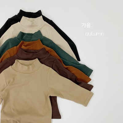 Retro soft children's half turtleneck bottoming shirt, autumn and winter Korean style long-sleeved T-shirt for boys and girls, warm and close-fitting top