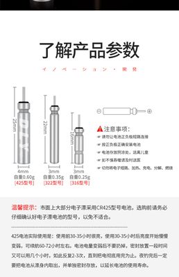 Power source luminous floating battery Danny Fu 425 electronic floating battery CR322 floating fish floating battery electronic