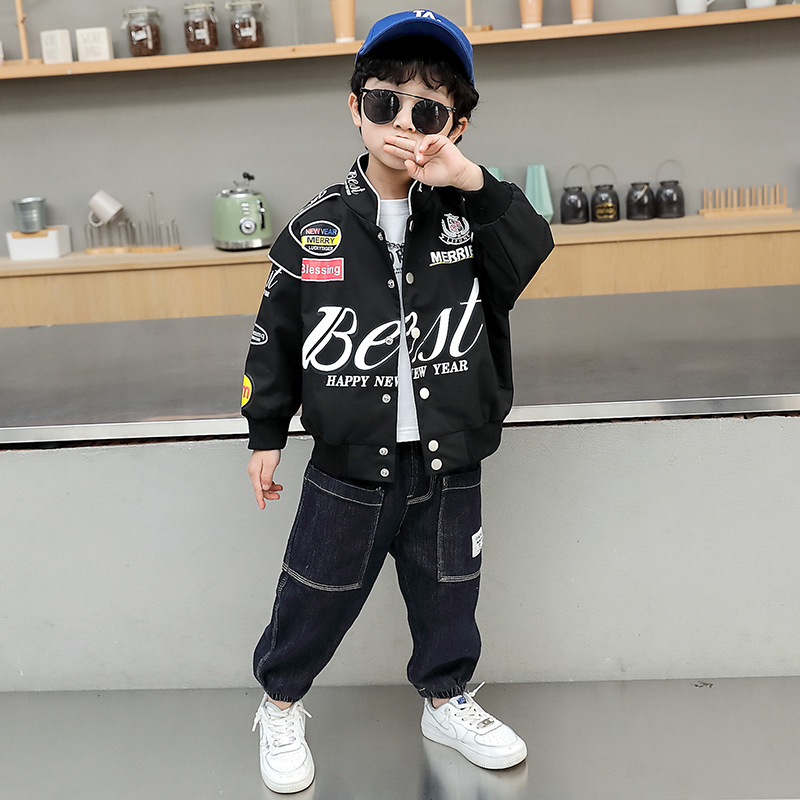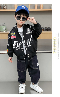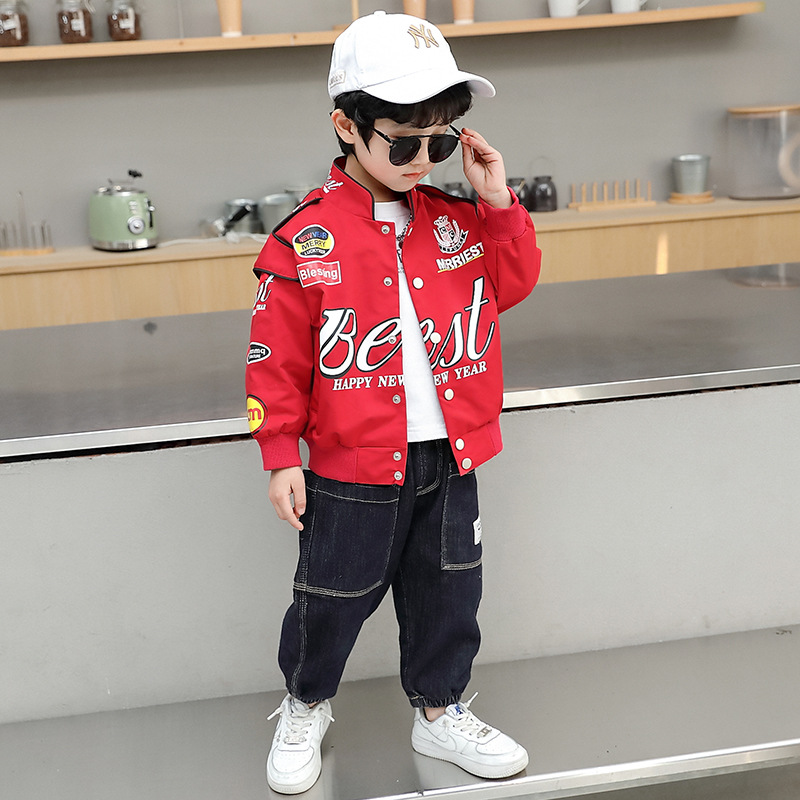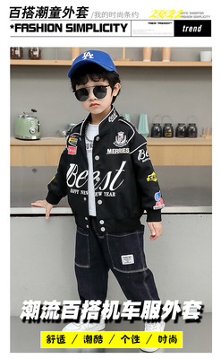Boys' Spring Jacket 2022 Spring and Autumn New Handsome Children's Motorcycle Suit, Junior and Middle School Style Baseball Uniform Jacket