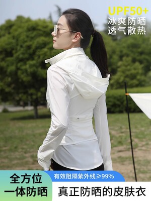 Autumn lulu same style sun protection clothing women's thin slim fit hooded long-sleeved jacket breathable original yarn sun protection clothing jacket