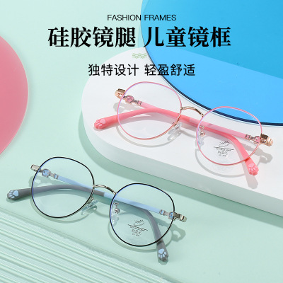 兒童防藍光眼鏡時尚復古硅膠金屬平光鏡學生大框素顏電腦護目眼鏡