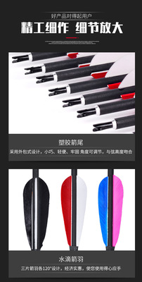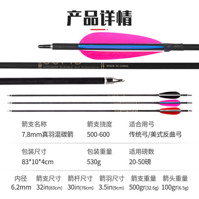 7.8mm real feather mixed carbon arrows, archery shooting, hunting recurve bows, mixed carbon arrows, direct supply from the manufacturer