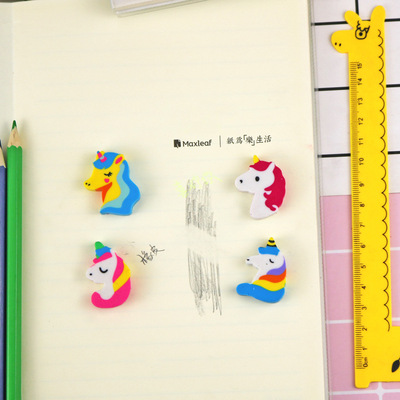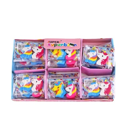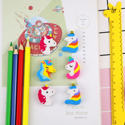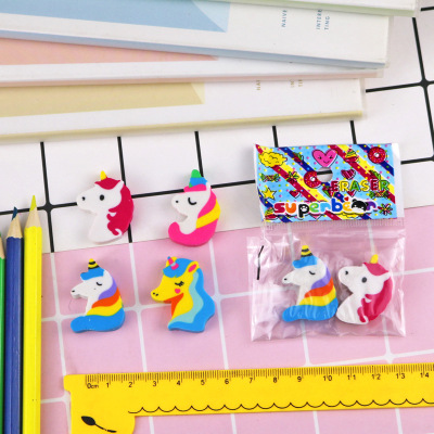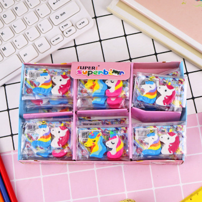 Creative cartoon unicorn eraser cute animal pony eraser 2 pieces in bag student stationery manufacturer wholesale