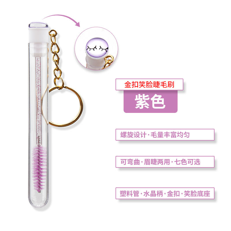 Wholesale one-time use spiral eyelash curling brow comb crystal rod nylon brush makeup brush gold buckle smiling tube eyelash brush