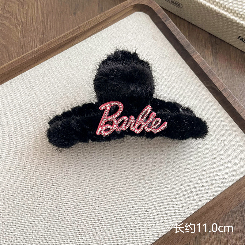 66# black letter plush hair clip 11cm
