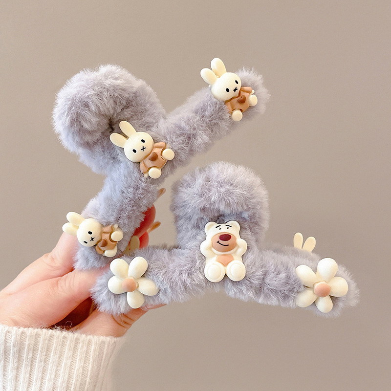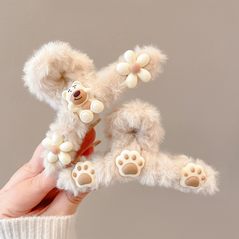 Winter and Autumn Plush Claw Hair Clip for Women, Rear Brain Shell Braided Hair Clip, Simple and Elegant Shark Hair Clip Headband, Hairpin Wholesale