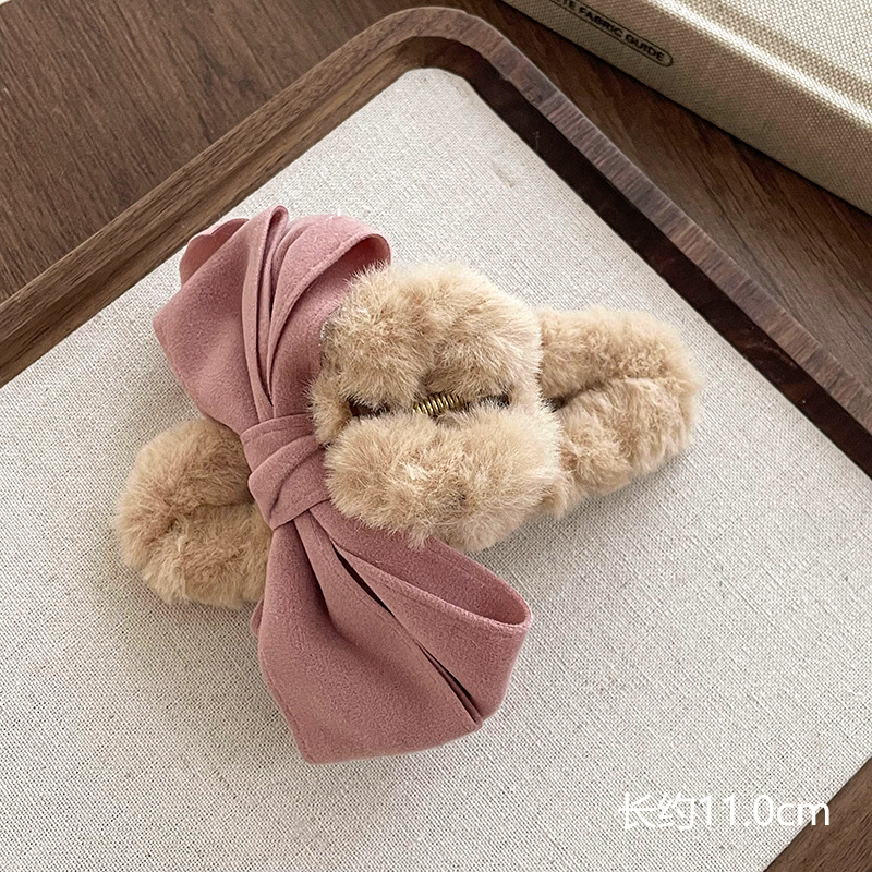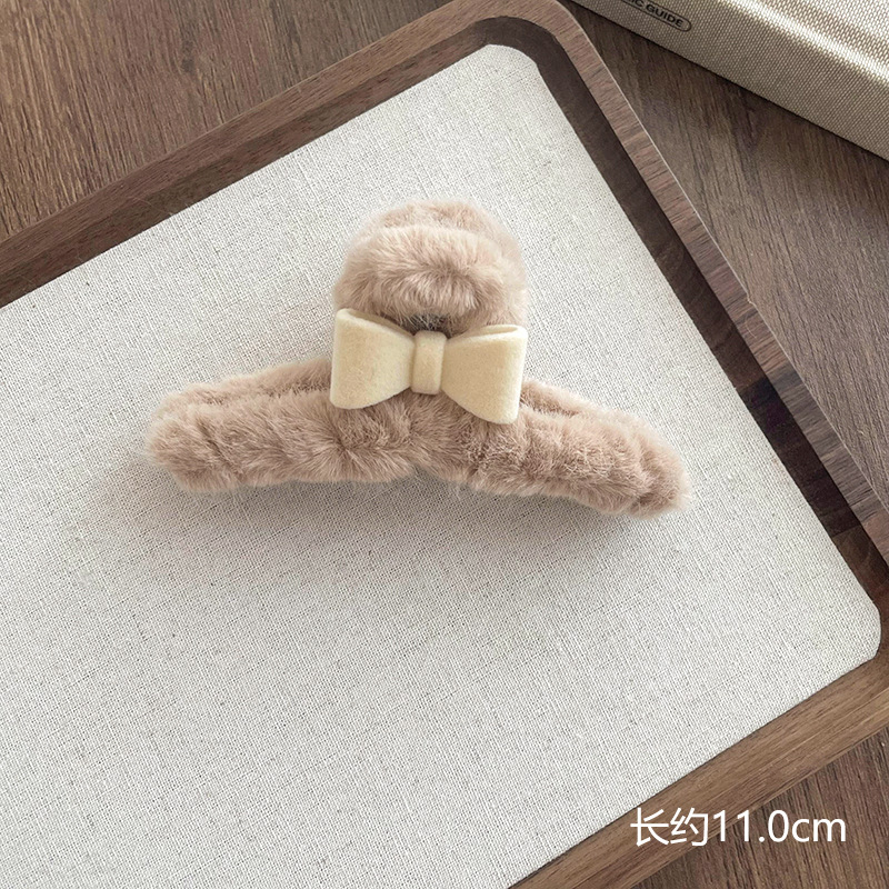 69# Coffee Brown Bow Fleece Hair Clip 11CM
