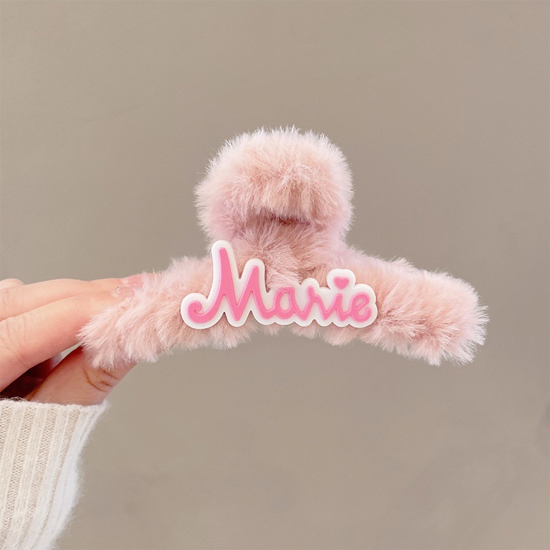 67# Pink Letter Plush Hair Clip 11CM