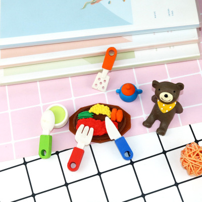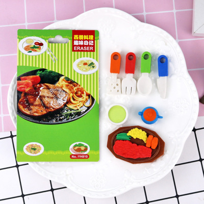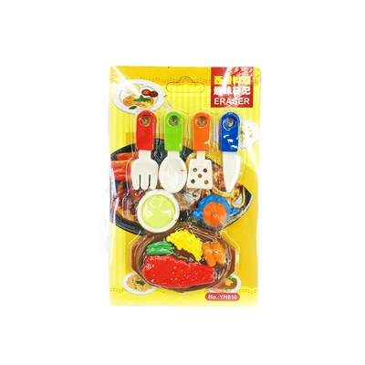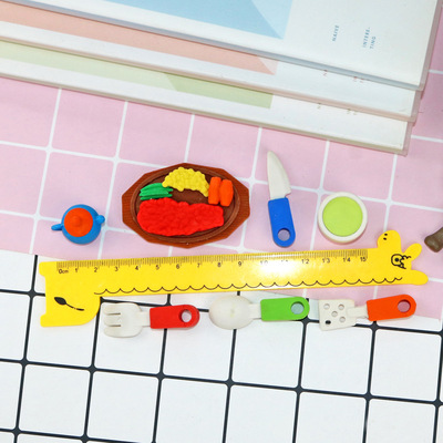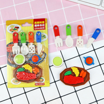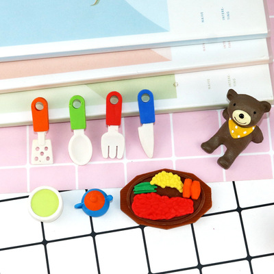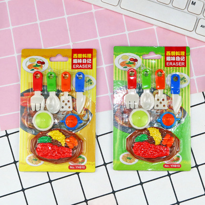 Creative Food Erasers: Cartoon-style Cute Steak Knife & Fork Insert Card-Erasers—Wholesale from Kids' Stationery Factory
